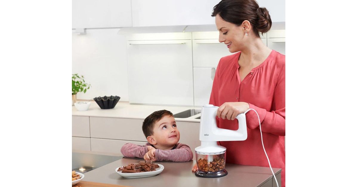 Due to the clever design, the hand mixer intuitively fastens all attachments to the front, allowing the same comfortable hand position to be maintained for mixing, blending and resting no matter which attachment is used. Since it stands stably with any attachment, your work area stays clean, so you can quickly move on to the next step without interruptions.