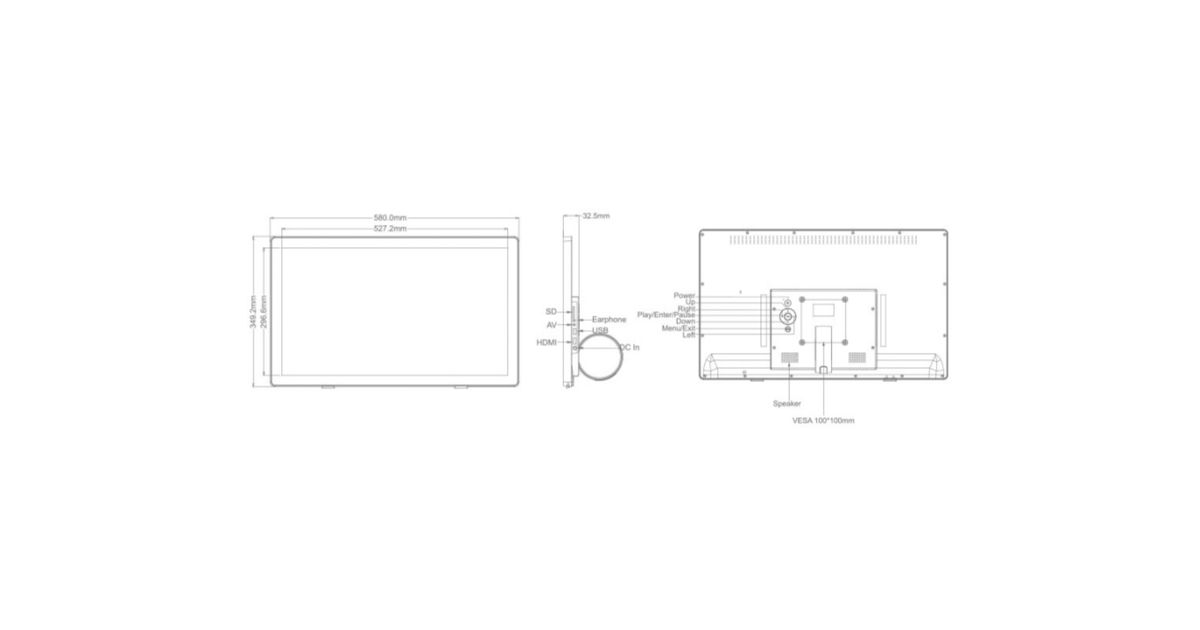 High-quality picture frame for POS solution with high resolution IPS display. Built-in stereo speakers, HDMI input, USB and SD input, headphone/audio out, AV input. VESA Compatible, Kensington anti-theft.