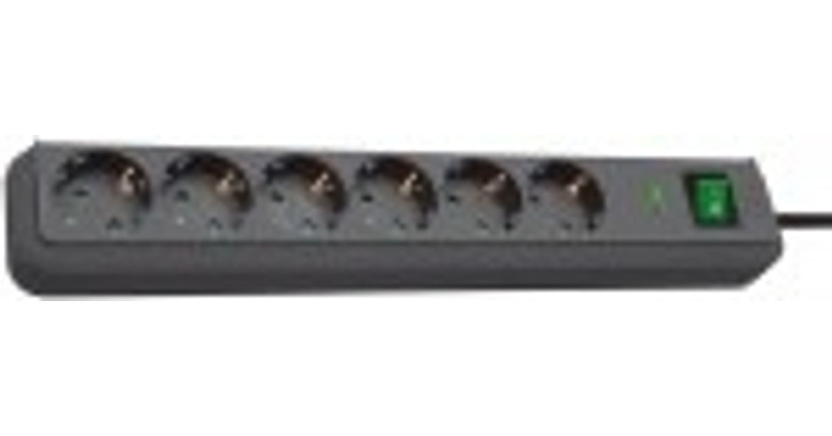 Brennenstuhl Eco-Line, 6 AC outlet(s), Type F, 3680 W, 13500 A, Black, IP20
