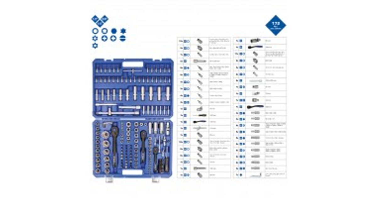 Brilliant Tools BT023172, Socket set, 1/2", Imperial, 172 head(s), 1-1/4,1/2,3/8", 465 mm