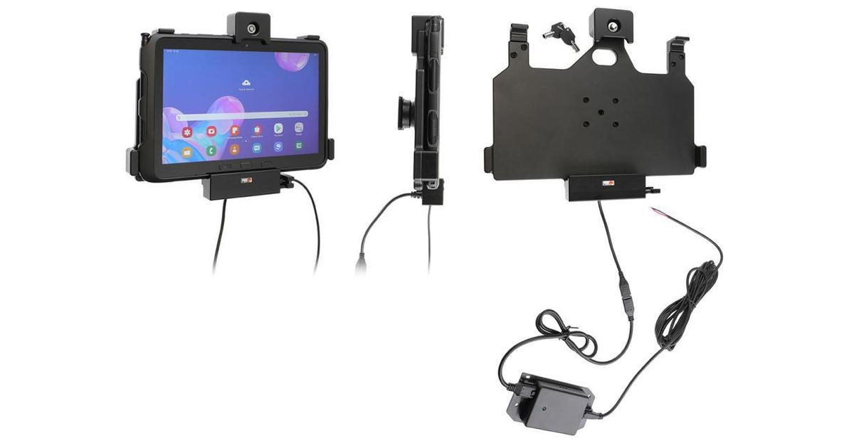 Active holder for fixed installation, with tilt swivel. Fits for devices with original skin. 2 keys included. With USB Host.