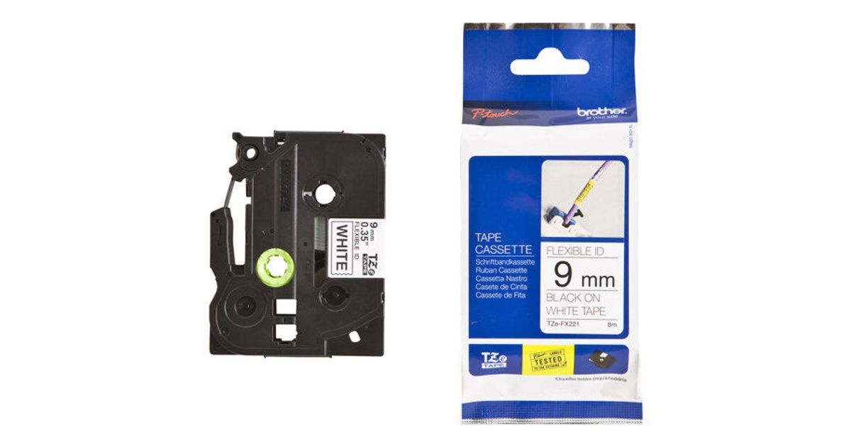 Brother Laminated tape, Black on white, TZe, Black, Thermal transfer, Brother, PT-2100VP, PT-2730, PT-7600, PT-2430PC, PT-2700, PT-9600, PT-9700PC, PT-9800PCN