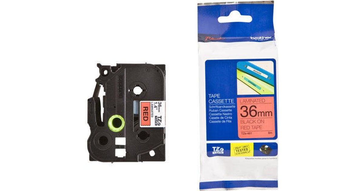 Brother Laminated tape 36mm, Black on red, TZe, Thermal transfer, Brother, PT-9600, PT-9700PC, PT-9800PCN, 3.6 cm