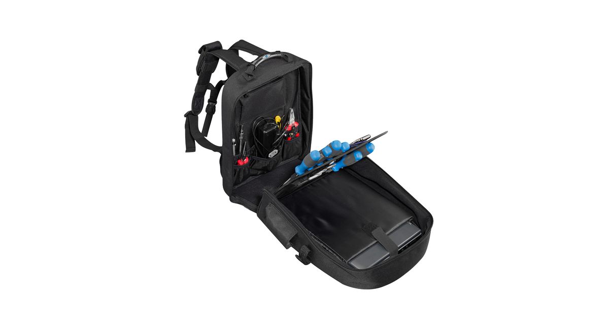 The tec.bag move is an ideal backpack for service technicians. This way laptop and the most important tools can be transported safely while the hands remain free. Thanks to the hinged frontside, which can be folded around 90°, all tools are quickly accessible.