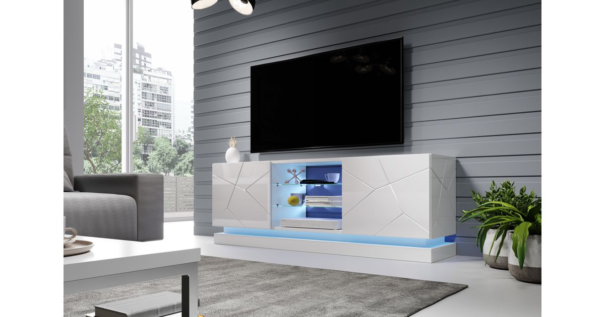 Cama TV cabinet QIU 160 MDF white gloss/white gloss
