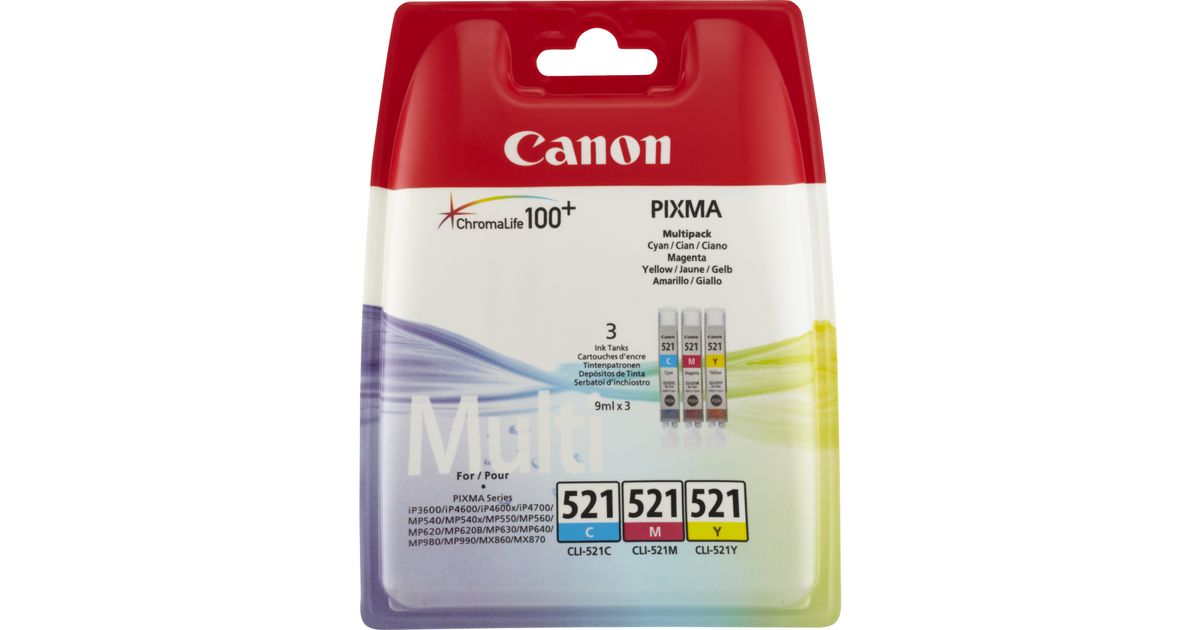 Canon CLI-521 C/M/Y Colour Ink Cartridge Multipack, Pigment-based ink, 3 pc(s)