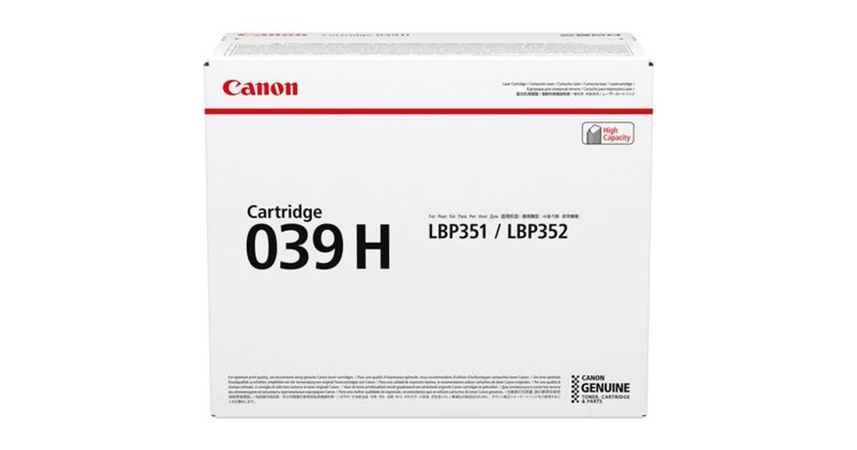 Get even more beautiful streak-free mono prints with the high-capacity all-in-one cartridge Cartridge 039H which works seamlessly with Canon i-SENSYS LBP351x/LBP352x to give you approximately 25,000 pages (ISO19752 measured).