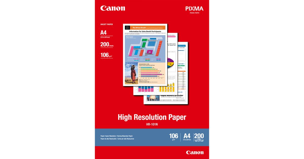 Canon HR-101N High Resolution Paper A4 - 200 Sheets, Inkjet printing, A4 (210x297 mm), 200 sheets, 106 g/m², White, 200 sheets