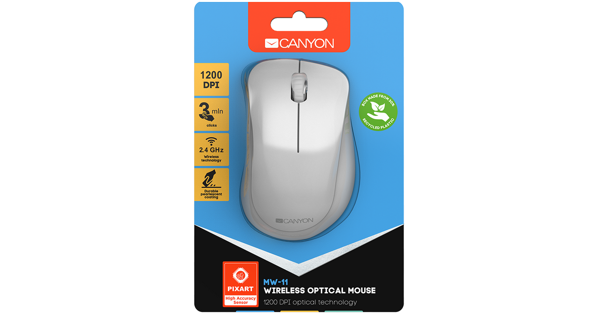 Canyon CNE-CMSW11PW, Right-hand, Optical, RF Wireless, 1200 DPI, Pearl, White