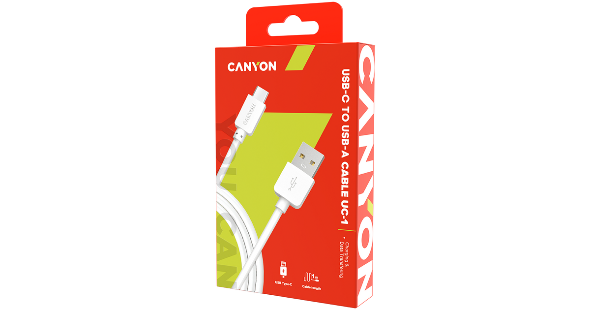 Canyon CNE-USBC1W, 1 m, USB C, USB A, USB 2.0, White