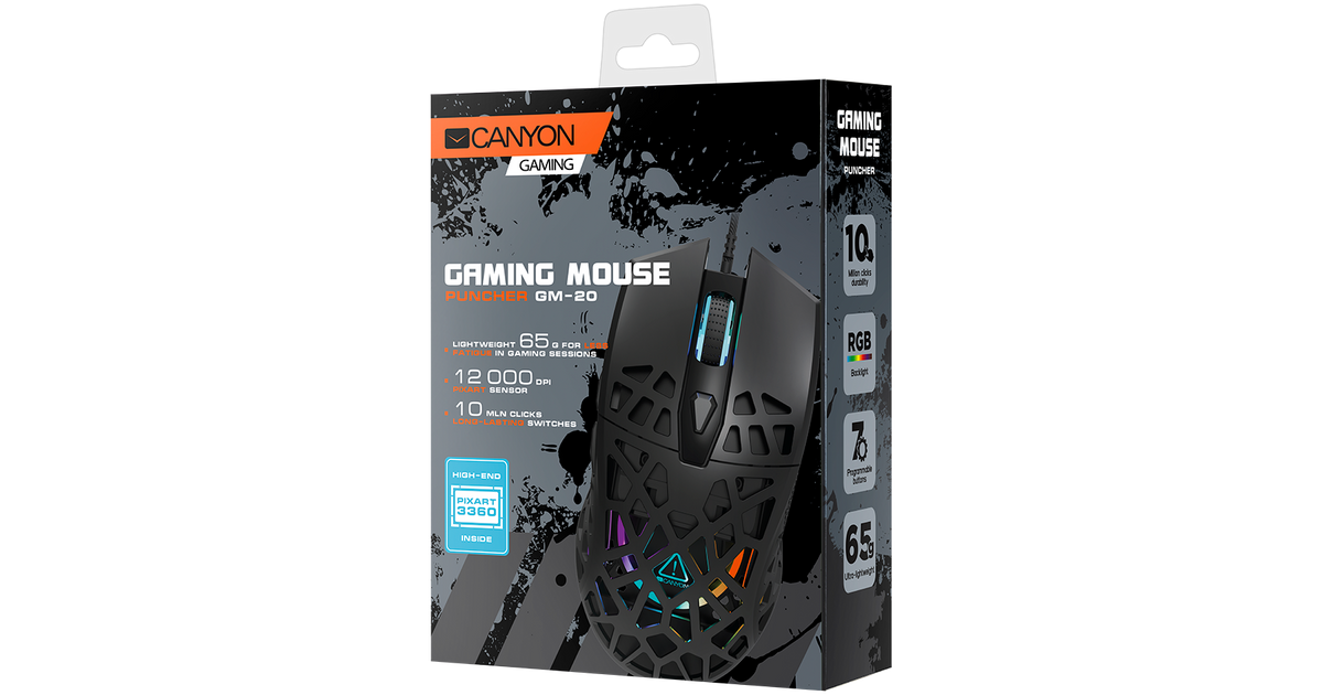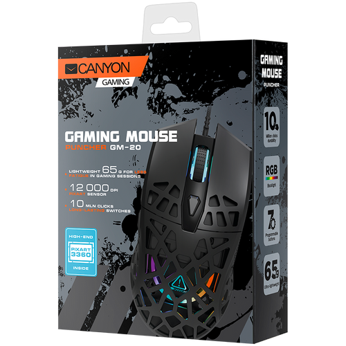 Canyon GM-20, Optical, USB Type-A, 12000 DPI, Black