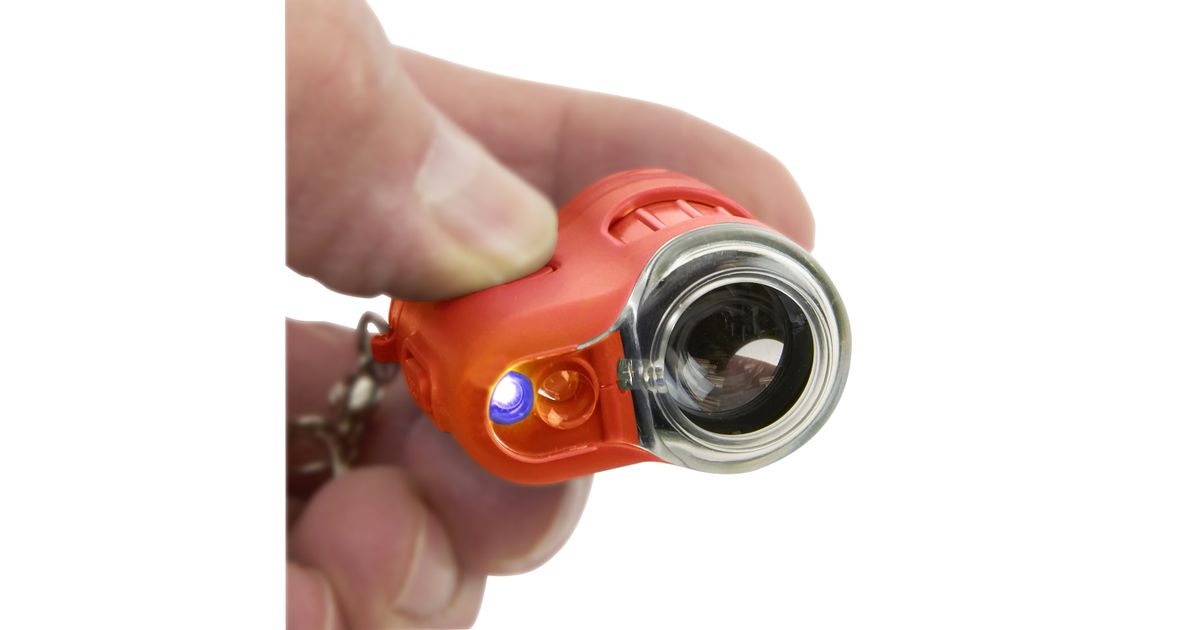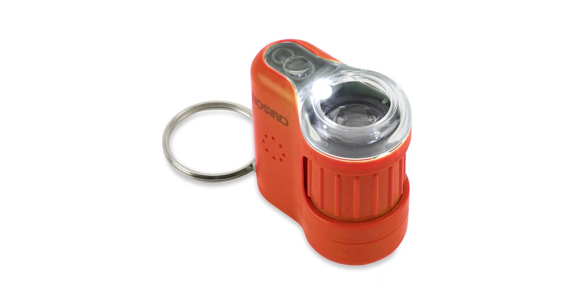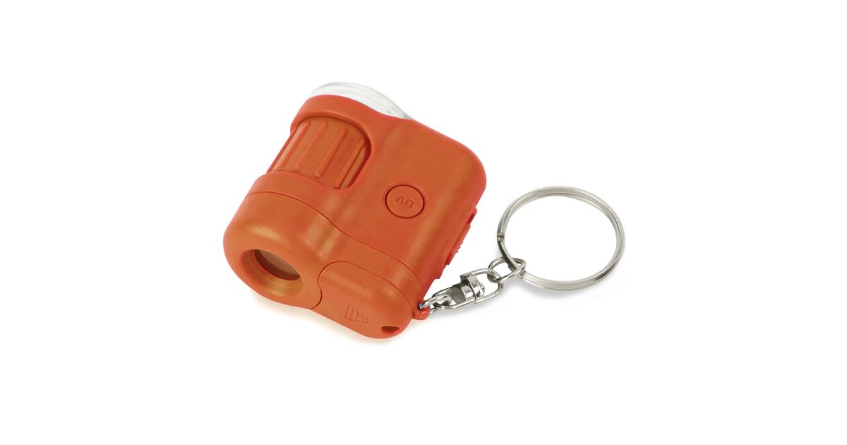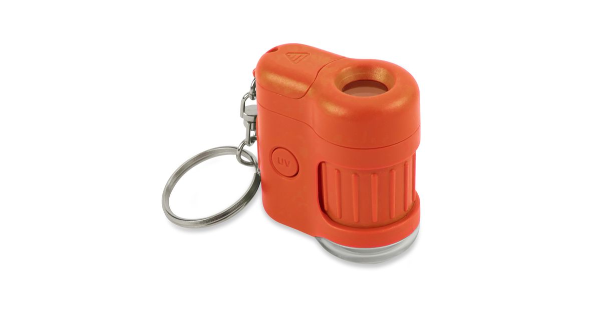 The MM-280O (Orange) MicroMini is a 20x, LED Lighted Pocket Microscope that is always at the ready! It is compact, portable and easy to use. It is so small it can fit in the palm of your hand. Clip on to any hand bag or backpack using the attached key chain. Now you can explore anything…anywhere using the LED flashlight! View fabric, flowers, foliage, printing pixels and more all up close! View the hidden objects in currency with the included UV light. Uses 3 G12 Batteries (included).