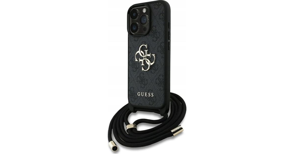 Case guess 4g big logo cord stap crossbody for iPhone 16 pro max black