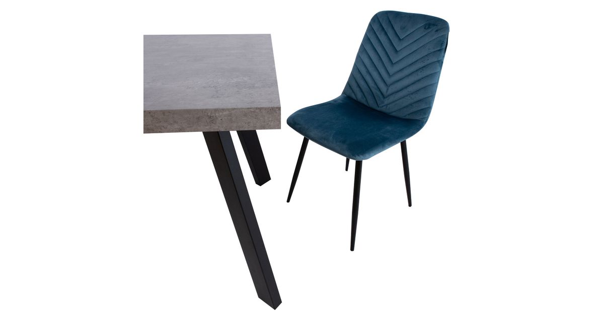 Chair BRIE blue. The comfortably shaped seat is lightly upholstered and covered with blue velvet fabric. The cover material is polyester fabric, Martindale 25 000. The powder coated metal legs are black. The overall dimensions of the chair are 45x53xH89cm. Seat width 44cm, seat depth 40cm, seat height 48cm, Backrest height 43cm. Weight limit 120kg.