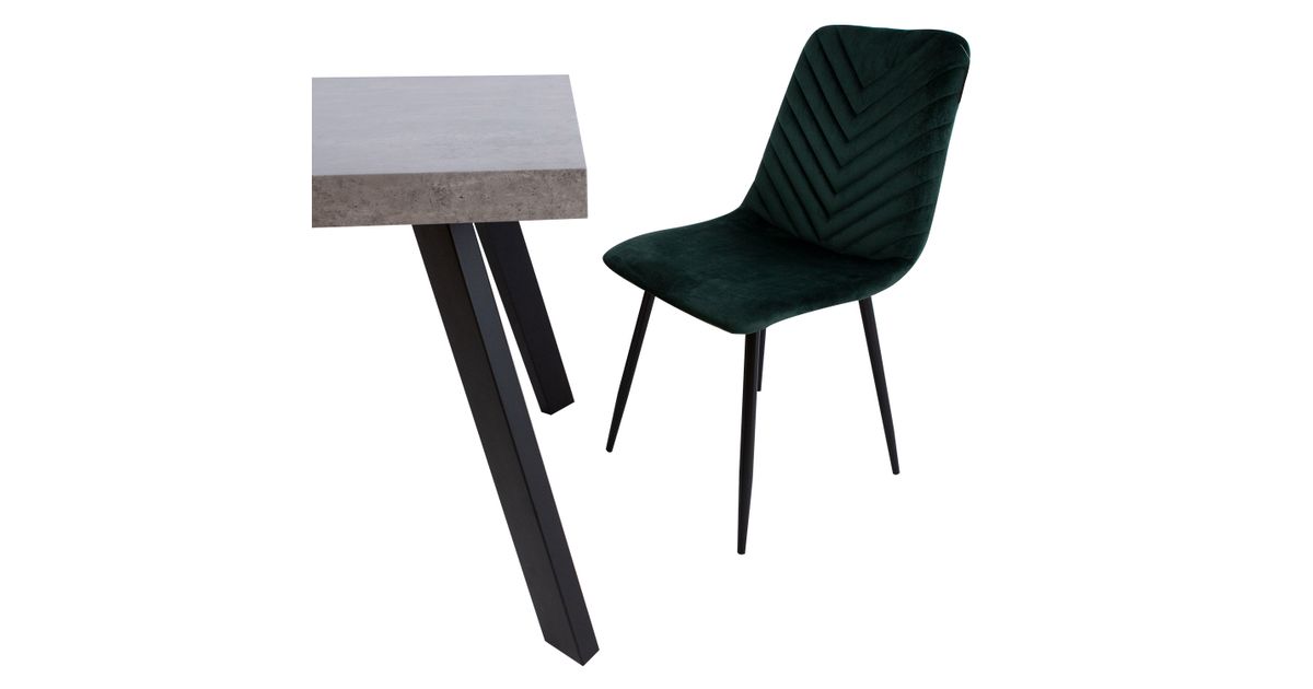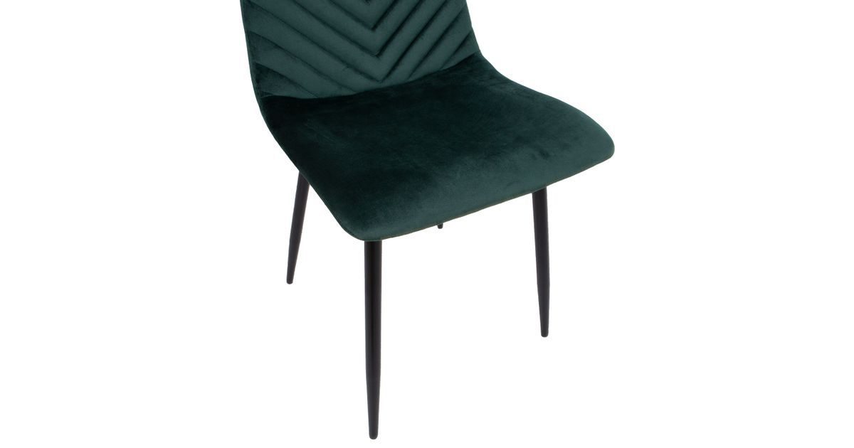 Chair BRIE dark green. The comfortably shaped seat is lightly upholstered and covered with dark green velvet fabric. The cover material is polyester fabric, Martindale 25 000. The powder coated metal legs are black. The overall dimensions of the chair are 45x53xH89cm. Seat width 44cm, seat depth 40cm, seat height 48cm, Backrest height 43cm. Weight limit 120kg.