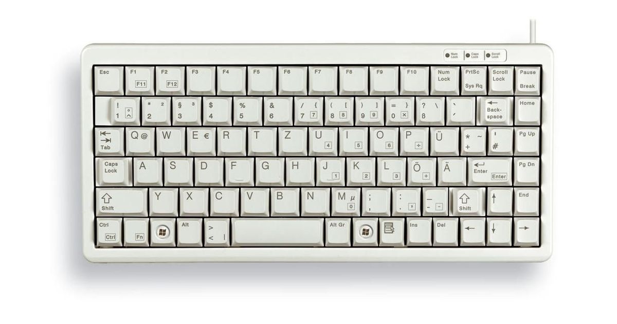 CHERRY Compact Keyboard, QWERTY, 83 keys, Combi USB/PS2, Light Grey, Mini, Wired, USB + PS/2, QWERTY, Grey
