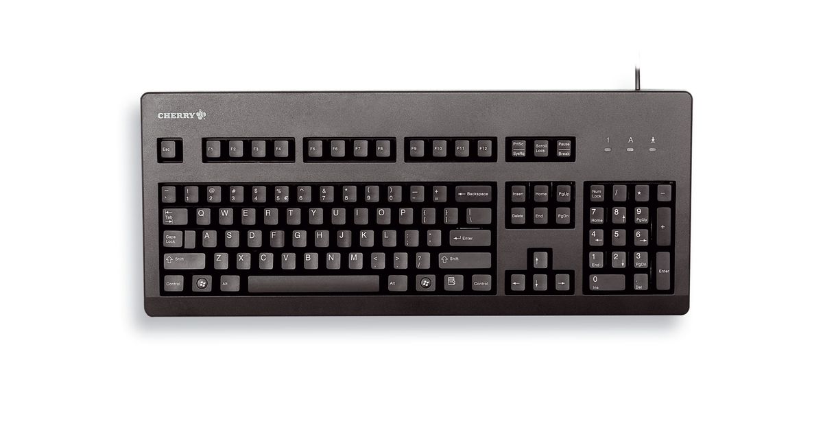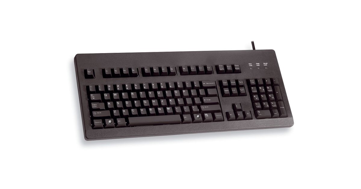 CHERRY G80-3000 BLACK SWITCH, Keyboard, Corded, Black, USB/PS2 (QWERTY - UK), Full-size (100%), Wired, USB, Mechanical, QWERTY, Black