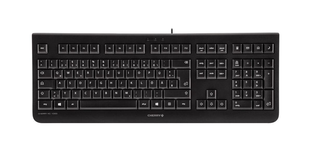 CHERRY KC 1000, Full-size (100%), Wired, USB, QWERTZ, Black