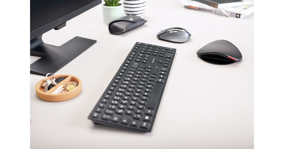 Quality meets design and innovation. The CHERRY KW 9100 SLIM is a silver-black version of the keyboard from the popular DW 9100 SLIM desktop set. As with the tried and tested desktop version, first-class workmanship, perfectly coordinated design and innovative functions come together.
