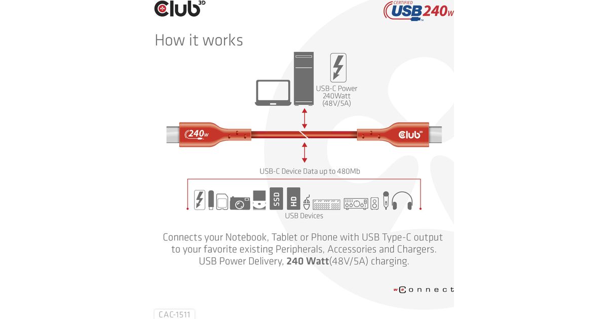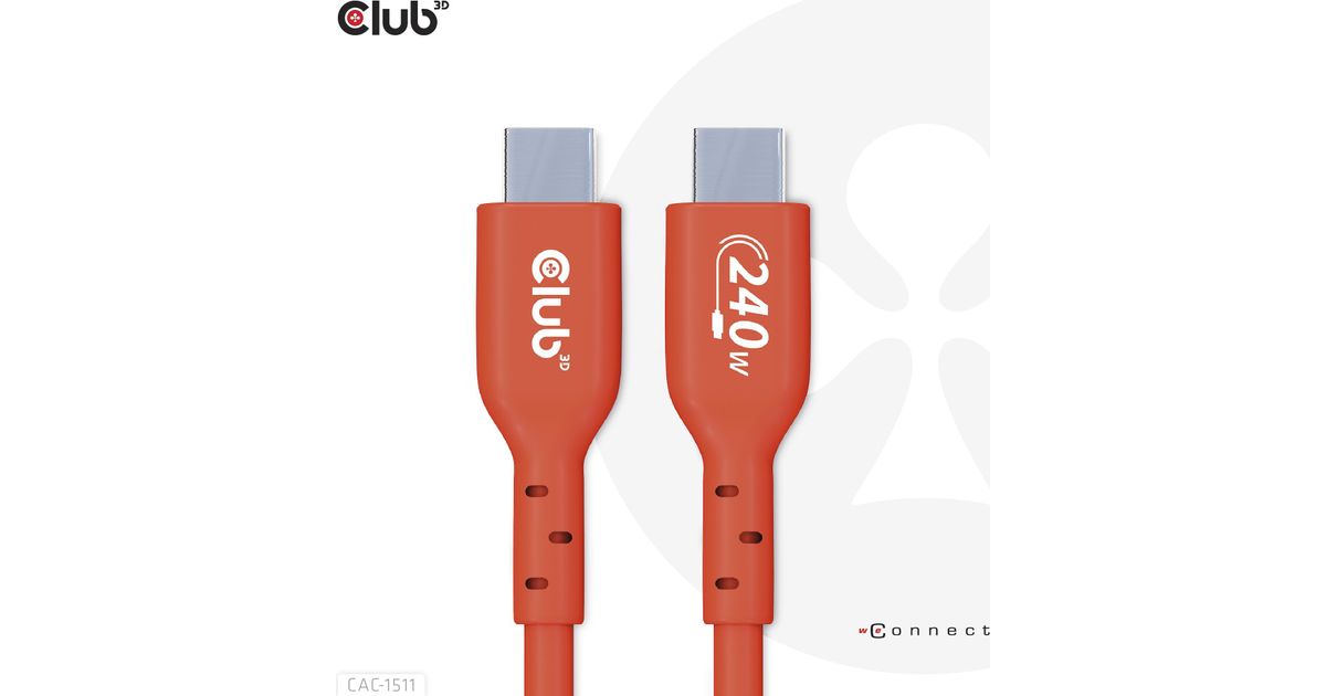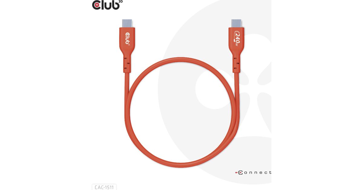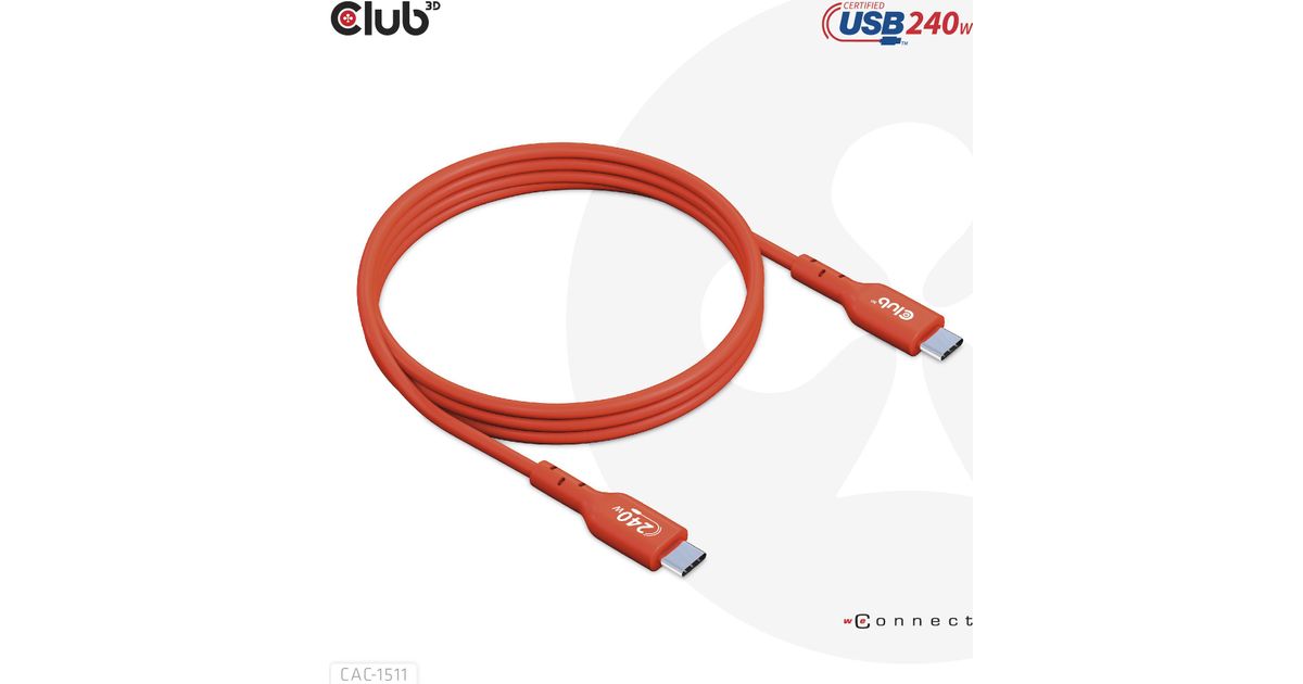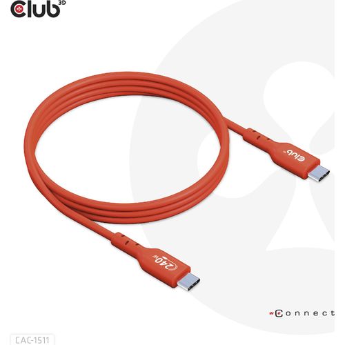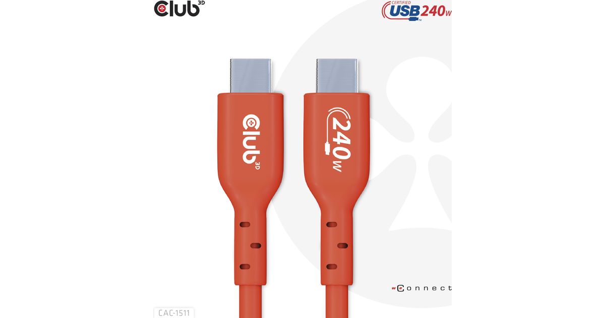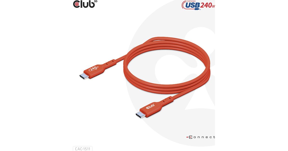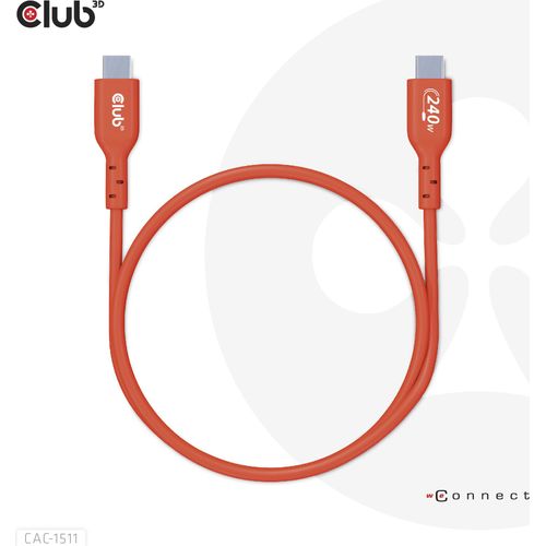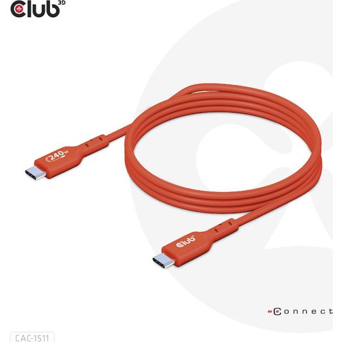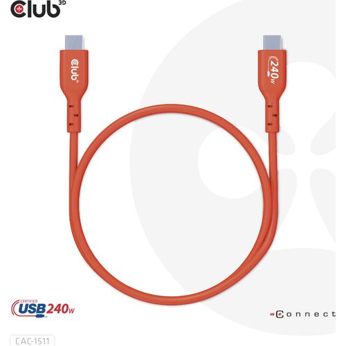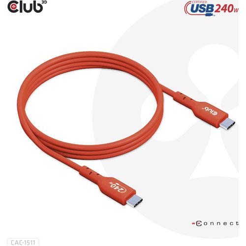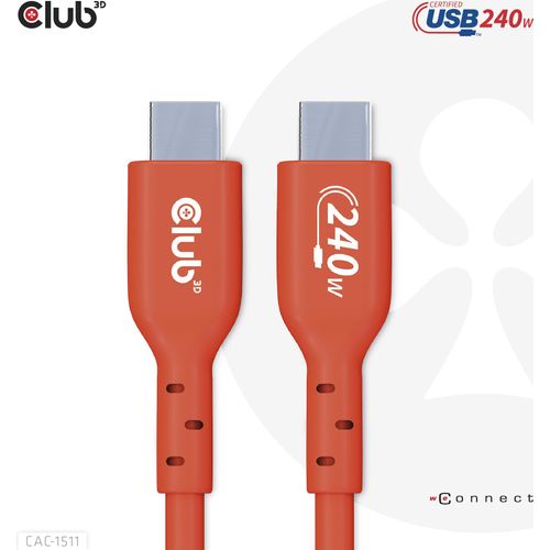 CLUB3D USB2 Type-C Bi-Directional USB-IF Certified Cable Data 480Mb, PD 240W(48V/5A) EPR M/M 1m / 3.23 ft, 1 m, USB C, USB C, USB 2.0, Orange