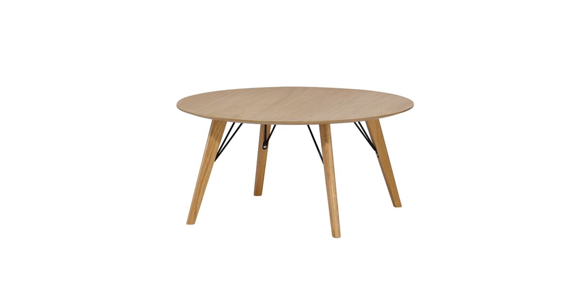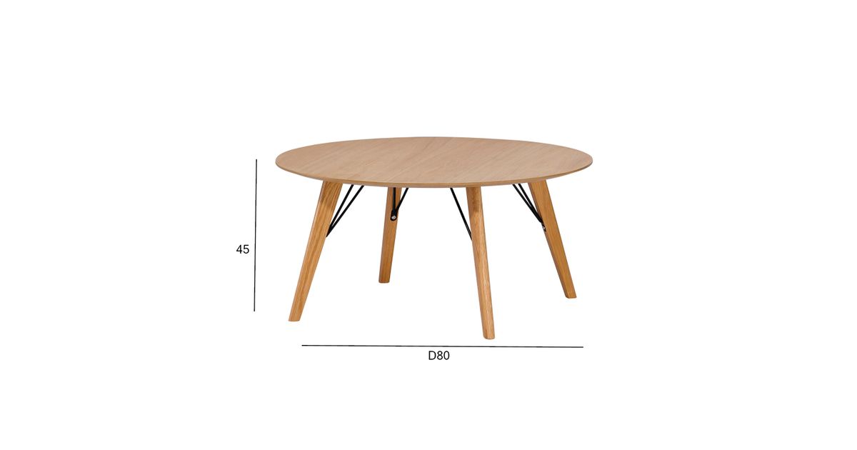 Coffee table HELENA D80xH45cm. Tabletop: 18mm MDF with natural oak veneer, lacquered. Oak wood legs with metal reinforcements.