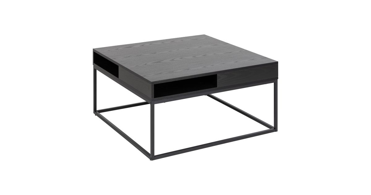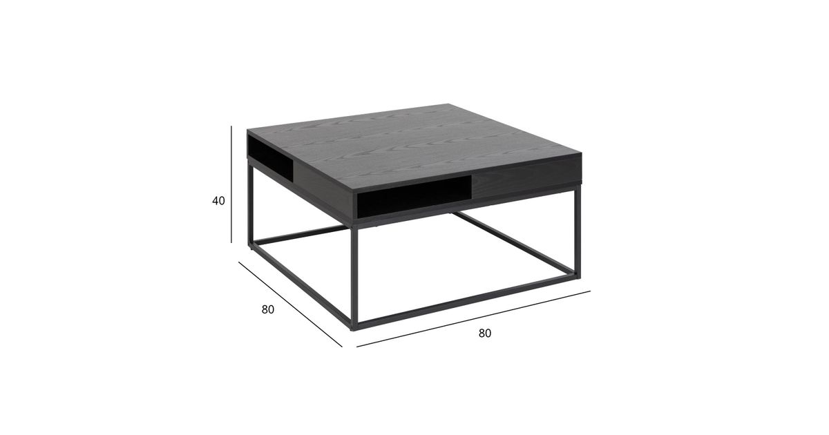 The coffee table is both stylish and practical. The open compartments let you store things while the spacious table top offers plenty of space to showcase decor. The matt black ash look adds a natural feel to the table. Table top in black ash melamine, legs in powder coated metal. CARE: Melamine surfaces require minimal maintenance. Use a cloth firmly wrung in mild soapy water and make sure to wipe dry. Avoid using scouring powder or nylon sponges as these will fade or scratch the laminate. For the base use a cloth firmly wrung in mild soapy water for daily cleaning. To avoid rust, wipe dry with a cloth. Do not scuff the surface with hard objects.