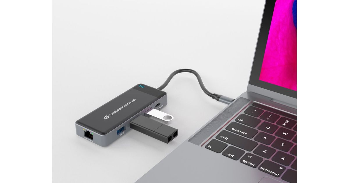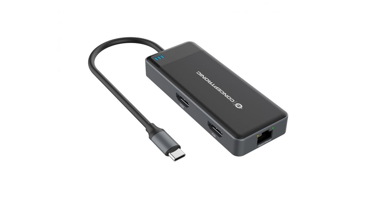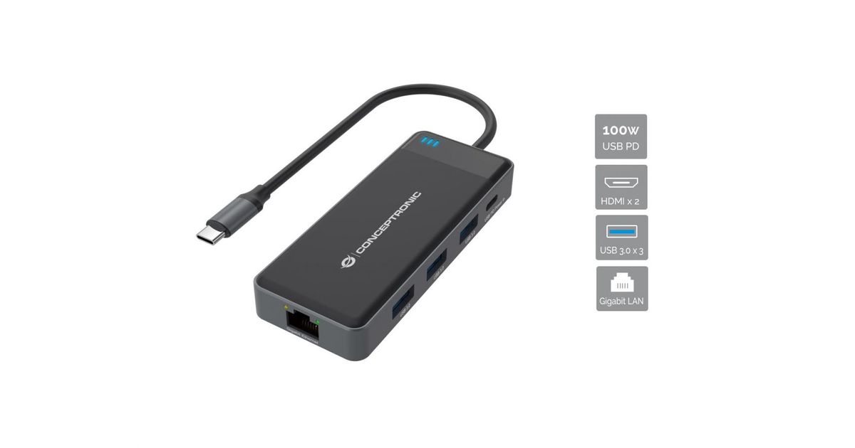 Conceptronic DONN14G, Wired, USB 3.2 Gen 1 (3.1 Gen 1) Type-C, 100 W, 1000 Mbit/s, Grey, 5 Gbit/s