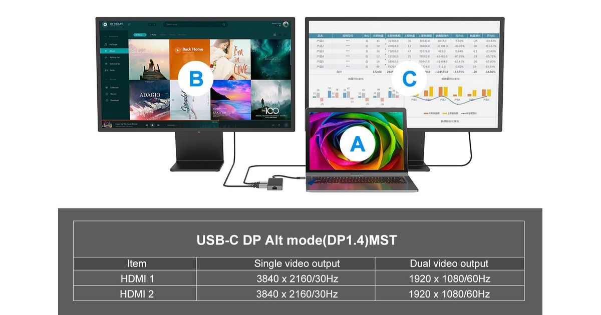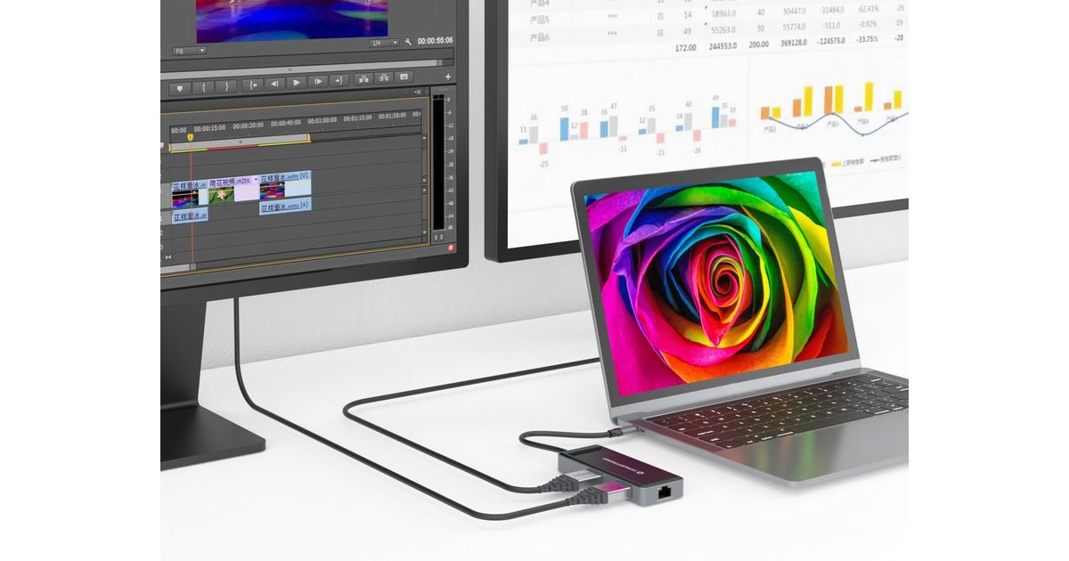 This 7-in-1 docking station makes it possible to expand your device’s USB Type-C capacity with HDMI/USB-C PD/USB 3.0/Gigabit Ethernet ports. The adapter provides an easy way to add HDTV, or equipment such as a monitor or projector to any USB-C device such as a smartphone, portable gaming console, MacBook, Chromebook Pixel or any similar late-model laptop with USB-C ports. The multiport video adapter lets you mirror or extend content on two additional monitors simultaneously (2 x HDMI), creating a dual-screen workstation.