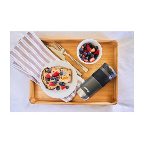 Taking beverages on-the-go is an important part of a busy lifestyle, but it can be frustrating when a travel mug leaks, leaving a stain on a favorite shirt or blouse. The SNAPSEAL™ Travel Mug gives confidence that stains won’t slow down the day. With a quick snap of the lid, the mug seals for 100% leak-proof performance. The Contigo SNAPSEAL™ Travel Mug is designed for an easy, one-handed drinking experience. Pop the top to drink (there’s no lid to unscrew or remove) and then snap it closed after sipping to seal the leak-proof lid. Tea or coffee stays hot for up to 7 hours or cold for up to 18 thanks to THERMALOCK™ vacuum insulation. This mug is designed to fit in most car cupholders and features a stylish grip to easily grab and go. This stainless-steel travel mug has a top rack dishwasher-safe lid and the body is hand-wash only.