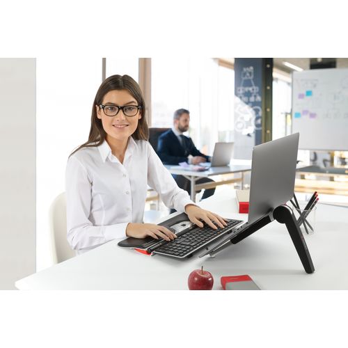 Fortunately, we are all used to a certain level of quality when it comes to our working environment and office ergonomics. However, such standards are not always maintained when we work from home or “hot desk”, despite the fact that we are all doing so more often these days. Many people are unaware that there are in fact just as many regulations and guidelines about mobile workstations as there are about “fixed” office ergonomics – if you work away from the office at least one day a week, that is. Therefore, it is very important not to just rely on your laptop when working away from the office.