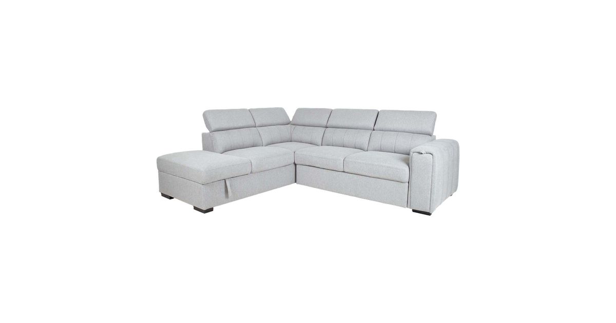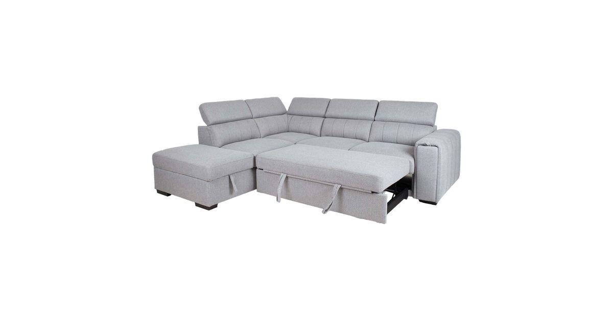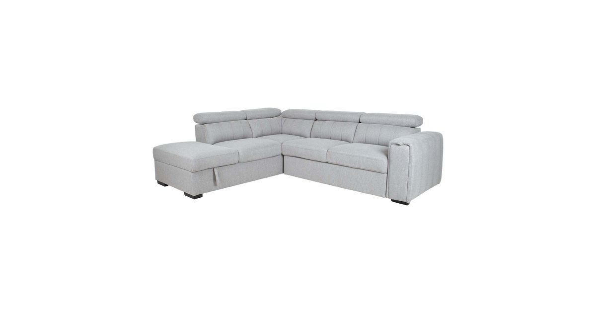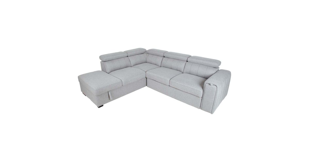 Corner sofa bed ODELIA-2 with storage box, left corner, grey.