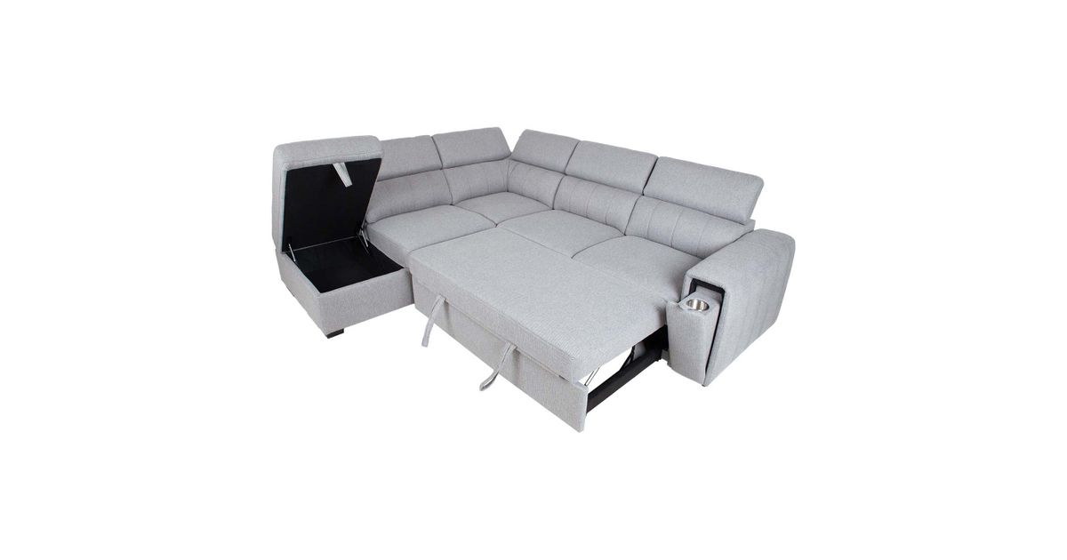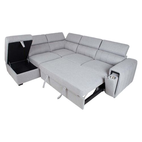 A comfortable and practical sofa bed charms with its versatility. The adjustable backrest height and the cup holder hidden inside the armrest provide extra convenience. There is a storage compartment under the corner section of the sofa.