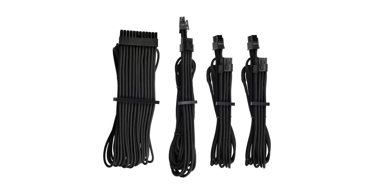 The CORSAIR Premium Individually Sleeved Type 4 Gen 4 Starter Kit includes the essential selection to upgrade your PSU cables to flexible paracord sleeve, available in seven different colors and patterns.