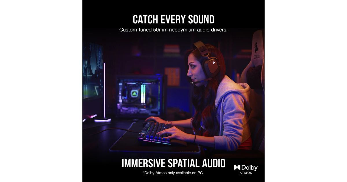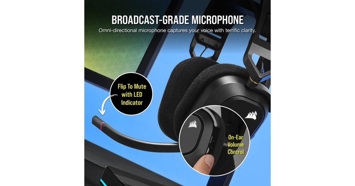 CORSAIR iCUE software enables precise control over your headset, with pre-tuned audio profiles, custom equalizer settings, sidetone control, and customizable RGB lighting.