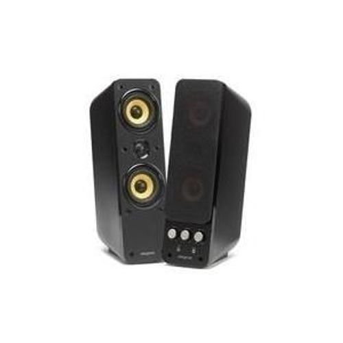 Creative takes your music to a new level of excellence with the GigaWorks T40 Series II speaker system. Designed and tuned to bring acoustic fidelity to your desktop, this two-piece system with its gloss black finish combines the best components and real power with the famous GigaWorks tradition to deliver pure music at its finest. Each speaker features two woofer drivers with woven glass fibre cones for warmth, and a cloth dome tweeter for clarity. These high-quality components are arranged in MTM (midrange-tweeter-midrange) configuration to achieve audiophile standards, supported by Creative's BasXPort™ technology for responsive bass. With front-mounted controls and two inputs for simultaneous connection to different sources, this is the system for those who demand the best.