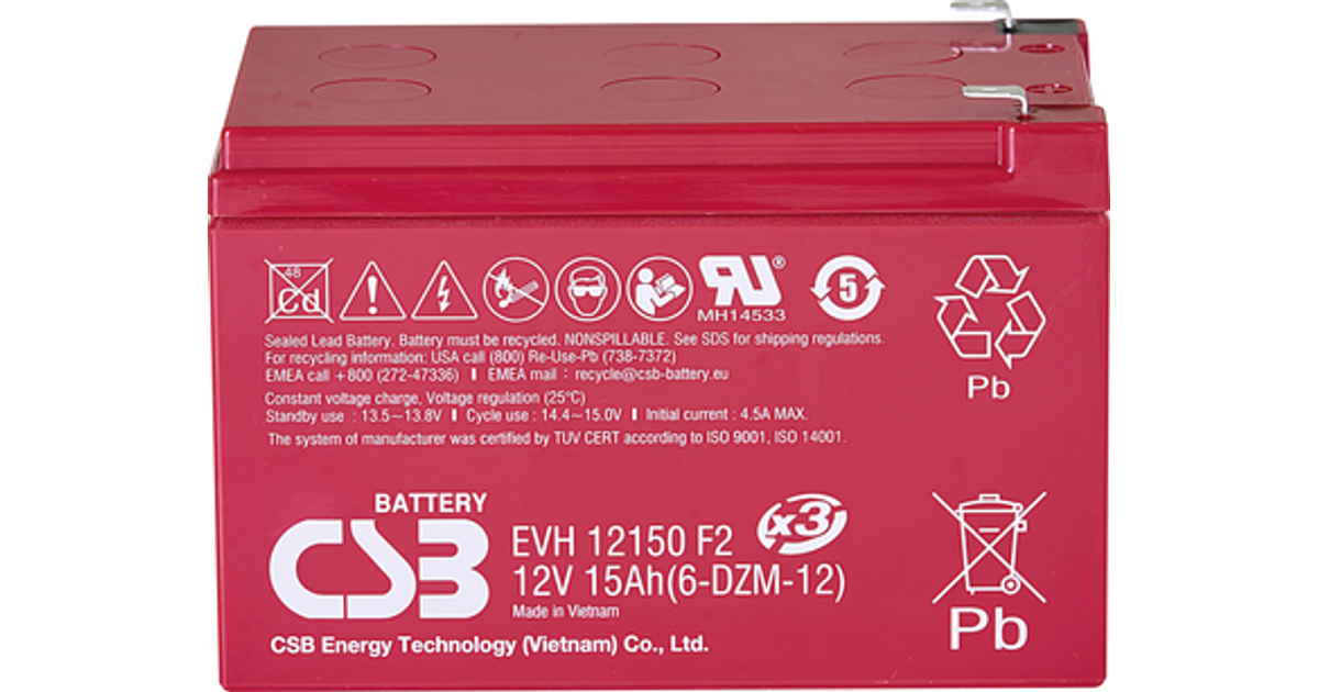 Csb Battery Evh 12150 Evh12150X3 Vrla 12 V 15 Ah Agm (W X H X D) 151 X 102 X 98 Mm 6.35 Mm Blade Terminal High Number Of Charge Cycles, Maintenance-Free, Low