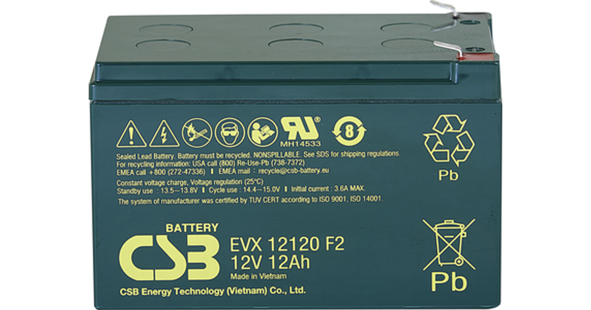 Csb Battery Evx 12120 Evx12120F2 Vrla 12 V 12 Ah Agm (W X H X D) 151 X 100 X 98 Mm 6.35 Mm Blade Terminal High Number Of Charge Cycles, Maintenance-Free, Low