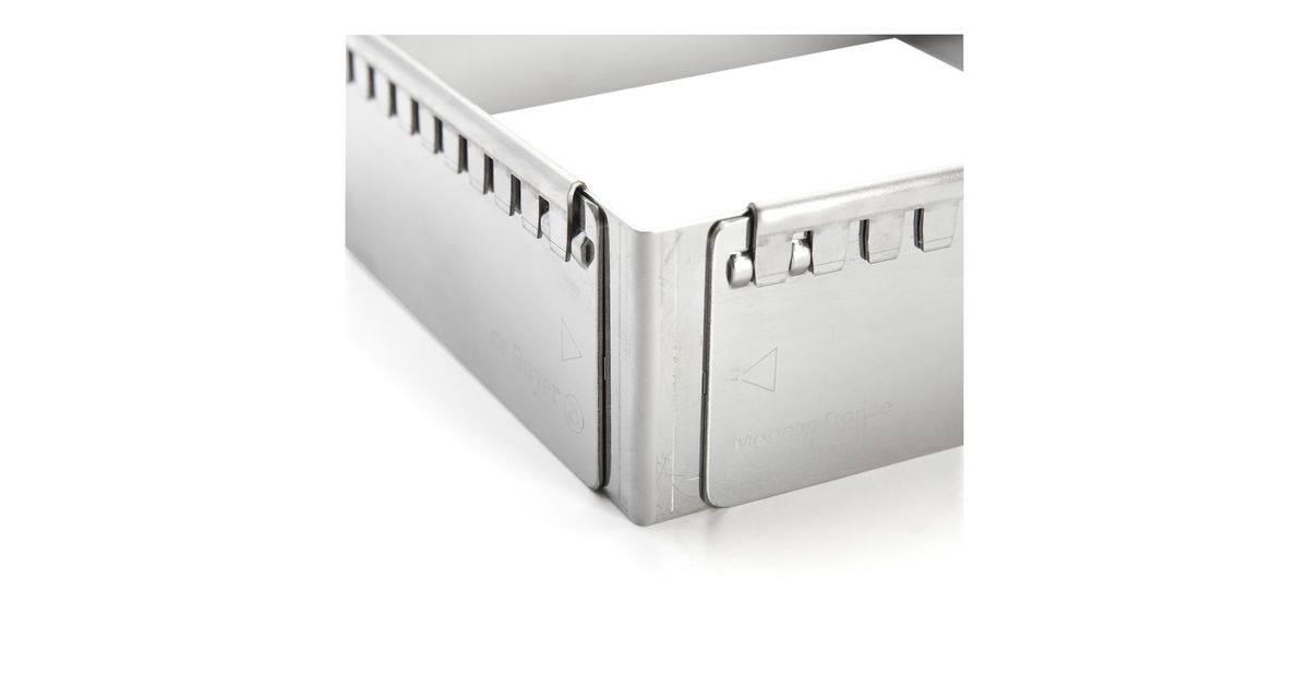 Expandable square or rectangular frame with sharp angles ideal for making mousse or cream based desserts, sponge cakes, Joconde biscuits..
