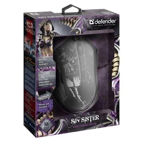 Defender SIN'SISTER GM-933 mouse Right-hand USB Type-A Optical 7200 DPI