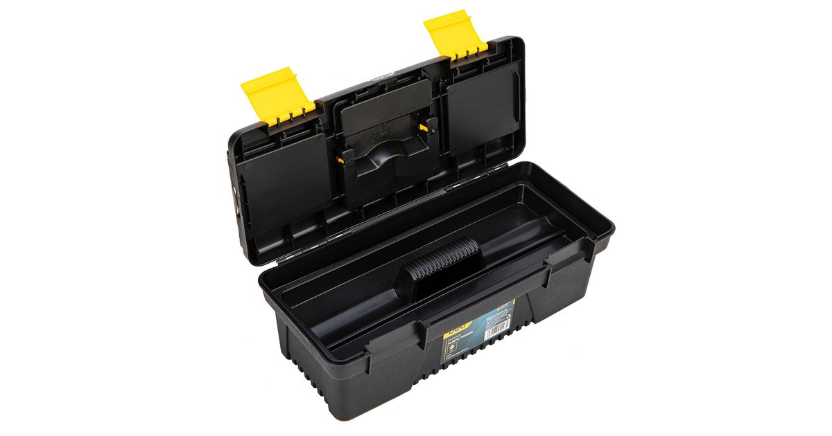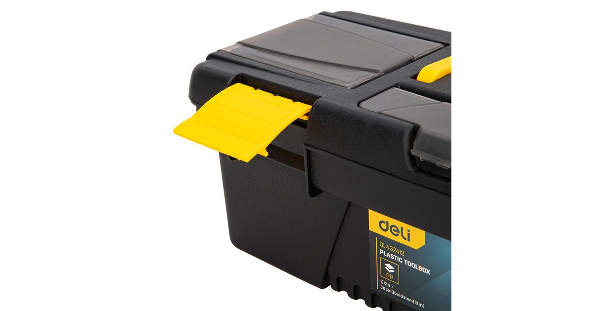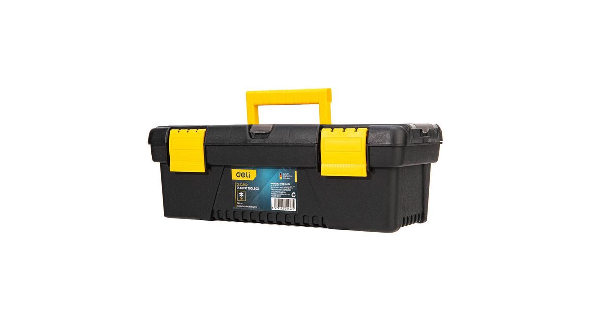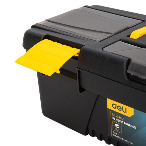 Deli Tools Plastic Tool Box, Tool box, Plastic, Black, Yellow, 304.8 mm, 129.5 mm, 104.1 mm