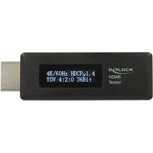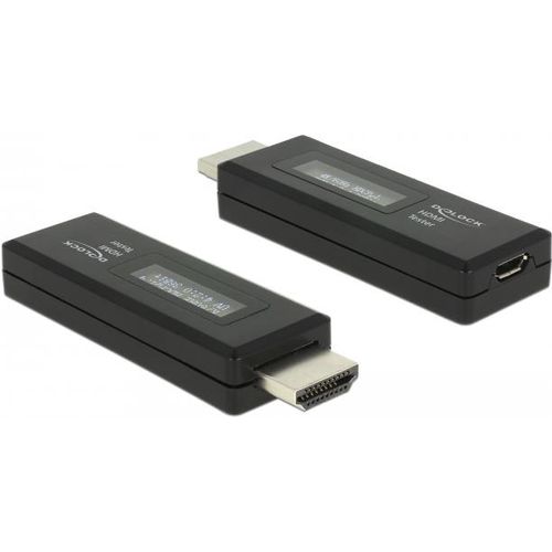This HDMI tester with OLED display by Delock is used to read the EDID data stored in the monitor. The OLED display shows the maximum resolution, the refresh rate, the HDCP status and the color depth of the connected device.
