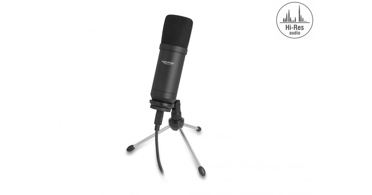 Typical USB microphones work with 16 Bit and 44 KHz. The Delock microphone offers a sampling rate of 24 Bit and 192 kHz, so it is possible to record in Hi-Fi studio quality.