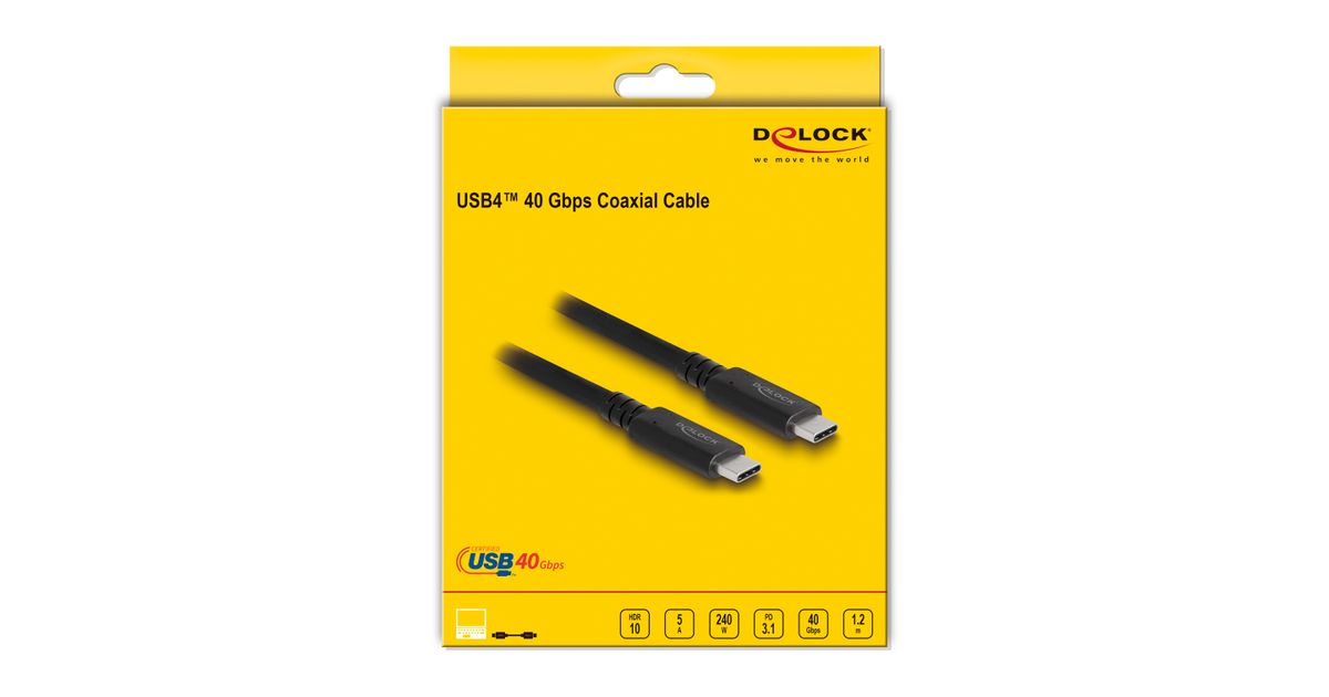 DeLOCK 80009, 1.2 m, USB C, USB C, USB4 Gen 3x2, 40000 Mbit/s, Black