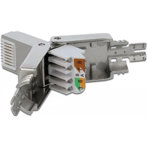 This RJ45 plug by Delock can be used to connect network cables. Installation of the plug to various cable types is tool-free and time-saving.