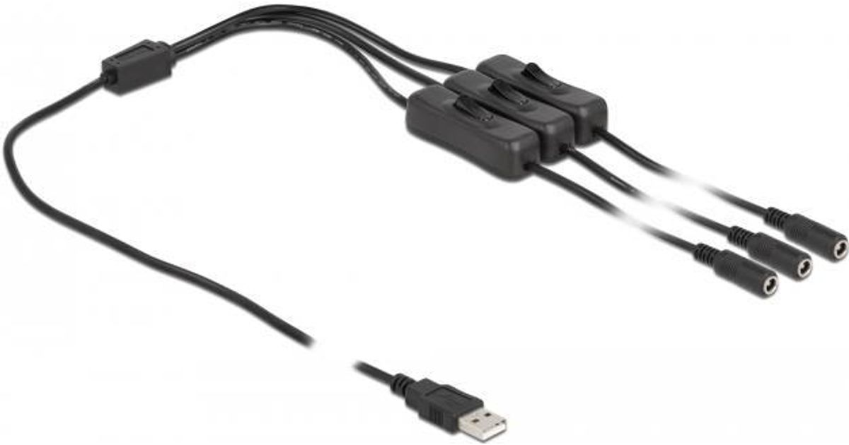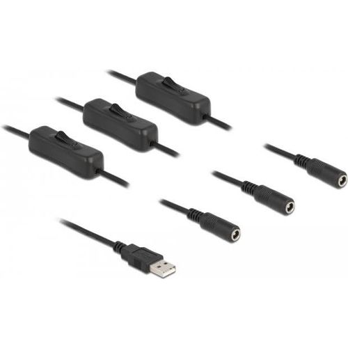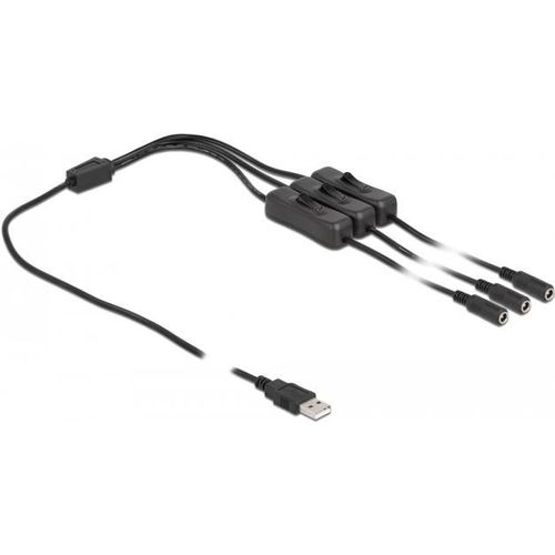 This cable by Delock can be connected to a USB Type-A port in order to supply power to devices with DC plug. By using the single on / off switches the power supply for the connected device can be switched on or off. Therefore it is not needed to remove the cable from the female port to switch off the power supply. The cable can be applied especially for hobby area as well as for tinkerer.