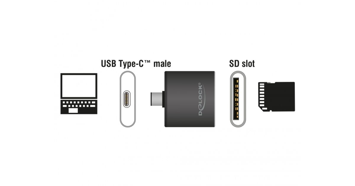 DeLOCK 91498 card reader USB 3.2 Gen 1 (3.1 Gen 1) Type-C Black