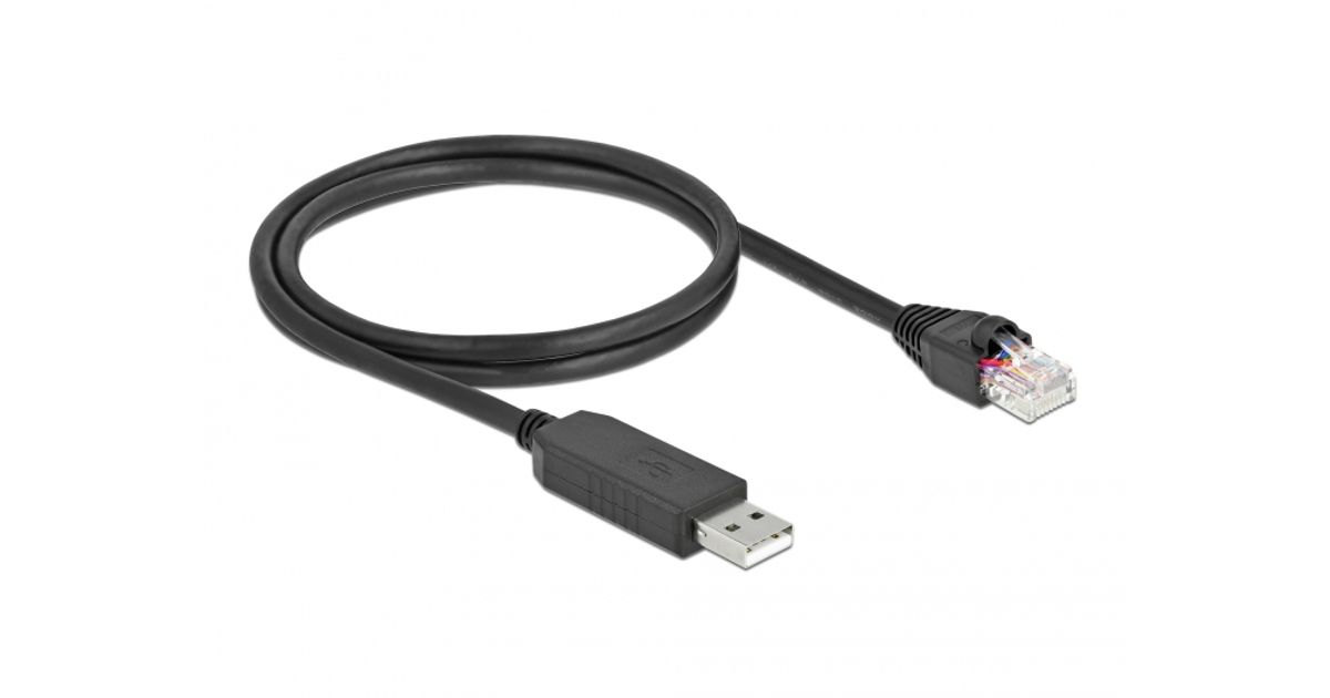 DeLOCK Serial Connection Cable with FTDI chipset, USB 2.0 Type-A male to RS-232 RJ45 male 1 m black, 1 m, USB Type-A, RJ-45