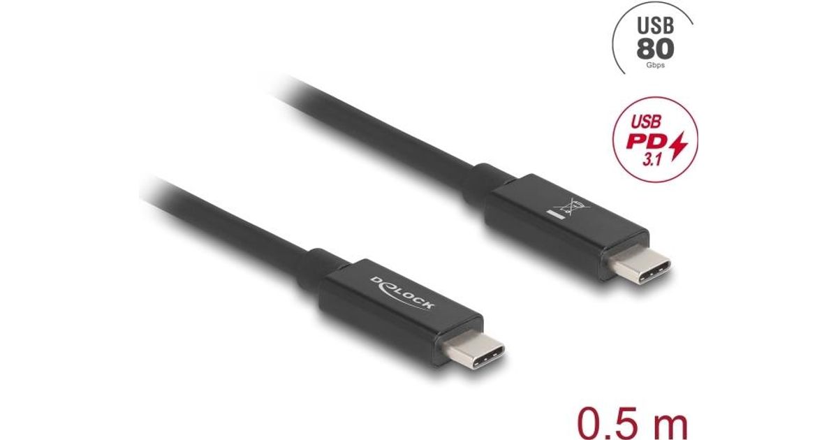 Delock USB 80 Gbps Kabel USB Type-C™ Stecker zu Stecker 16K 60 Hz PD 3.1 240 W E-Marker koaxial 0,5 m schwarz (81210)
