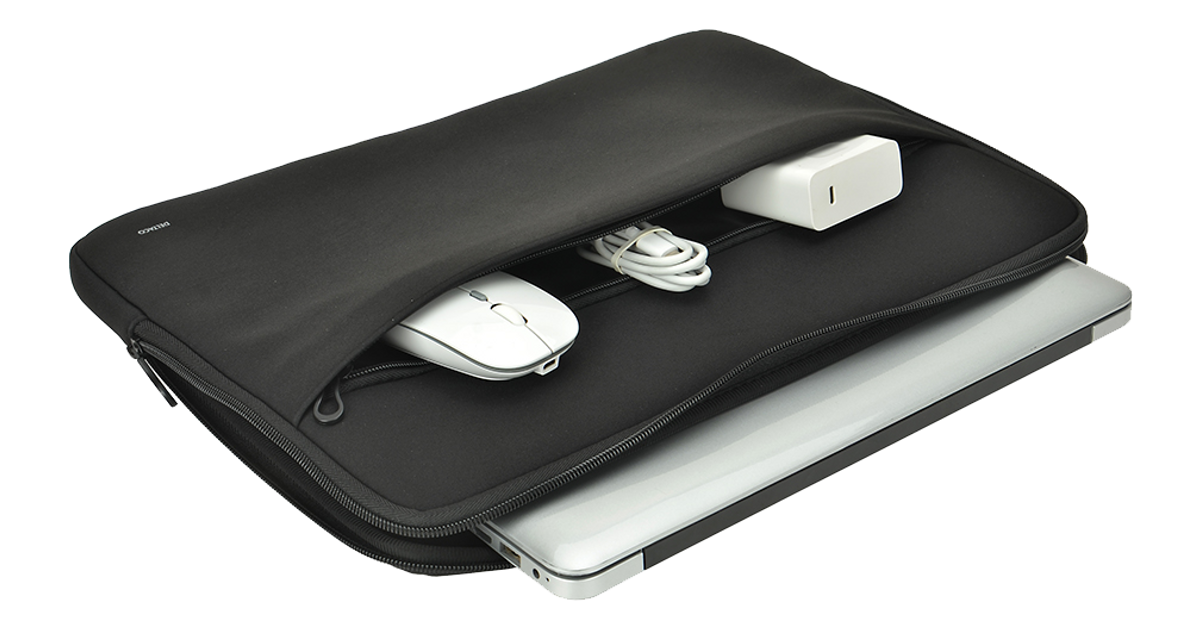 Durable laptop sleeve for 15,6-16-inch laptops. Crafted with premium neoprene, this sleek case is designed to withstand anything life throws your way. Not only is it completely waterproof, but it's also resistant to water, oil, and heat - ensuring your precious device stays safe and secure at all times. With a convenient front compartment, you can easily grab what you need without having to dig through your bag.