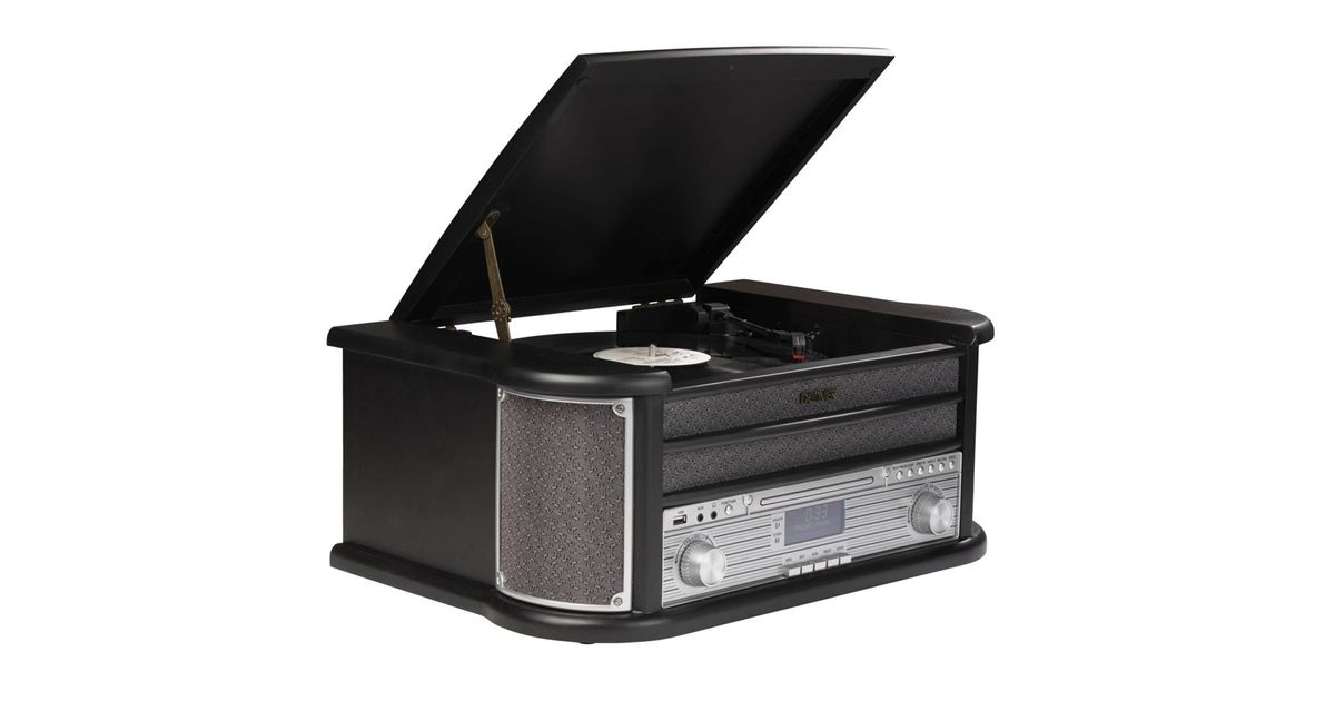 - Retro music centre with turntable and wooden look